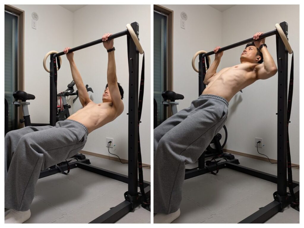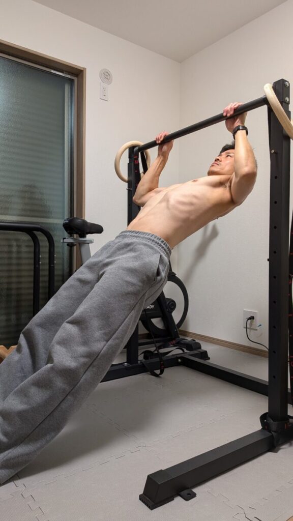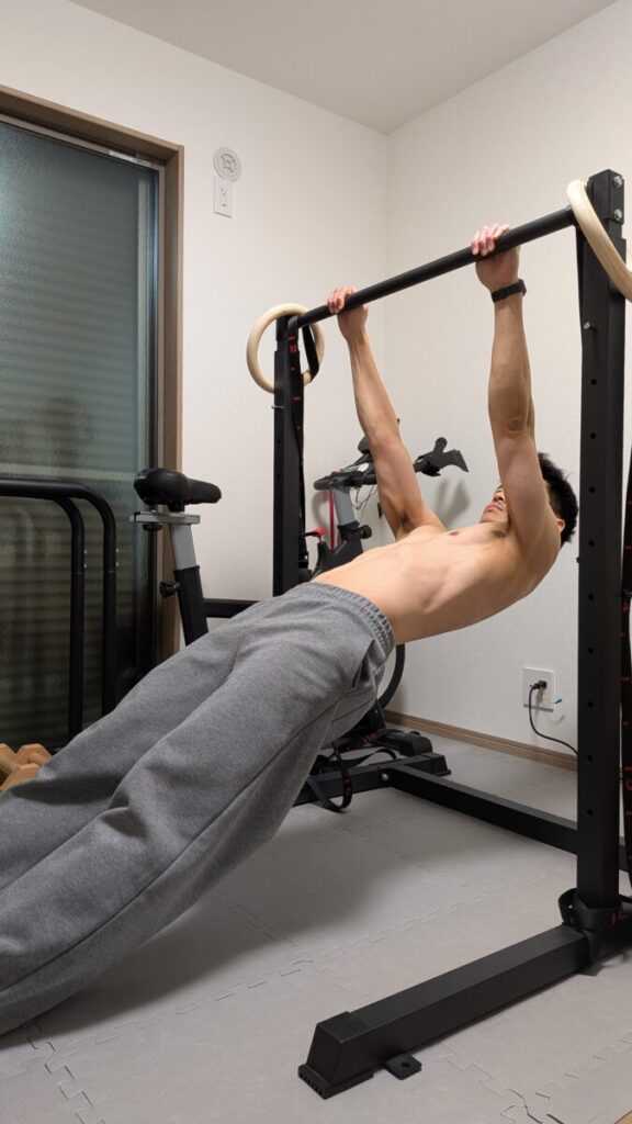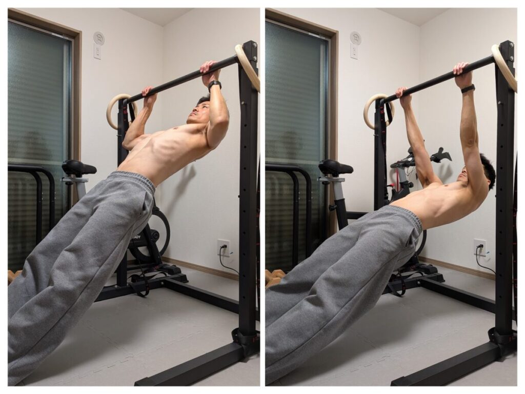 この深い溝を埋めない限り、どれだけ気合を入れても身体は浮きません。 そこで必要になるのが、今回解説するStep 3「インバーテッド・ロウ(斜め懸垂)」です。