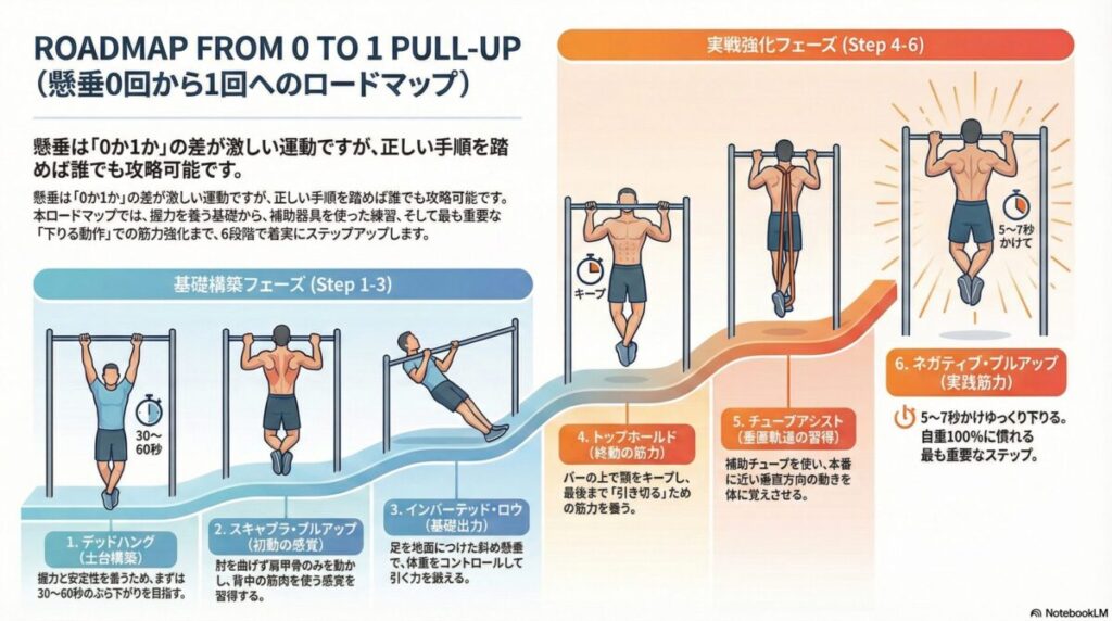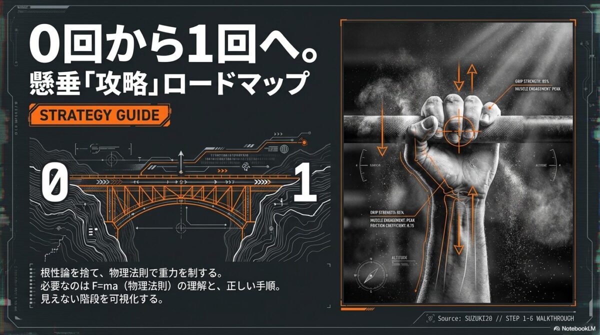 この記事では、懸垂0回から1回を達成するためのロードマップを説明します。